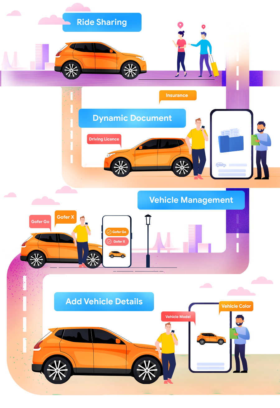 Gofer has a separate panel for the company to handle their vehicle set. So that the company could manage the entire fleet, including payout and others.