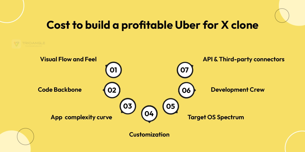 Hence, the upcoming section highlights the key cost factors to consider when building an efficient Uber for X clone app.