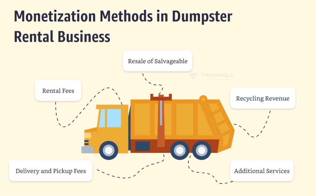 The most obvious source of revenue for a dumpster rental business is rental fees. Customers will pay for the use of the dumpster, and the fees are typically based on the size of the dumpster and the duration of the rental period. To maximize revenue, it’s important to price your rental fees competitively while also ensuring that they cover the cost of the dumpster and any associated expenses.
