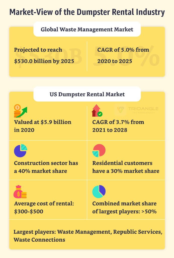 - As per Grand View Research, in the US, the dumpster rental market size was valued at $5.9 billion in 2020 and is expected to grow at a CAGR of 3.7% from 2021 to 2028.