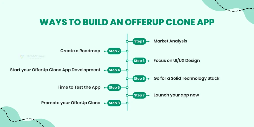 A step-by-step guide to build a robust OfferUp clone app is listed below.