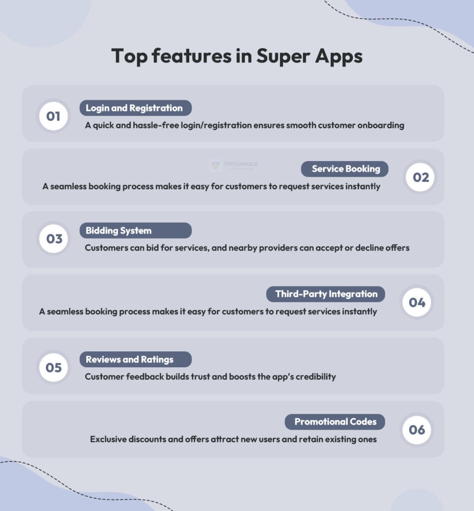 Third-party integration plays a pivotal role as different third-party apps like PayPal and Stripe can uplift the usability of the superapp.